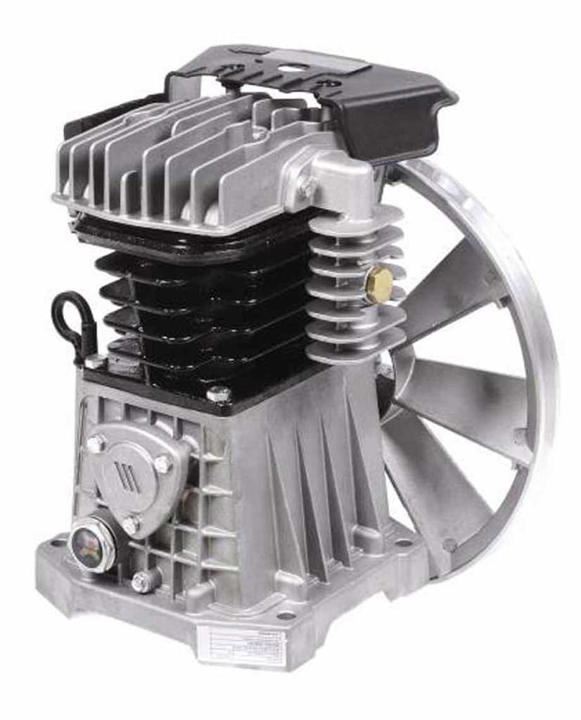 Este modelo cuenta con un sistema de doble pistn que aumenta la capacidad de compresin y eficiencia, fabricado con un bloque de cilindros en hierro fundido que garantiza una larga vida til gracias a su resistencia a la corrosin y al desgaste.