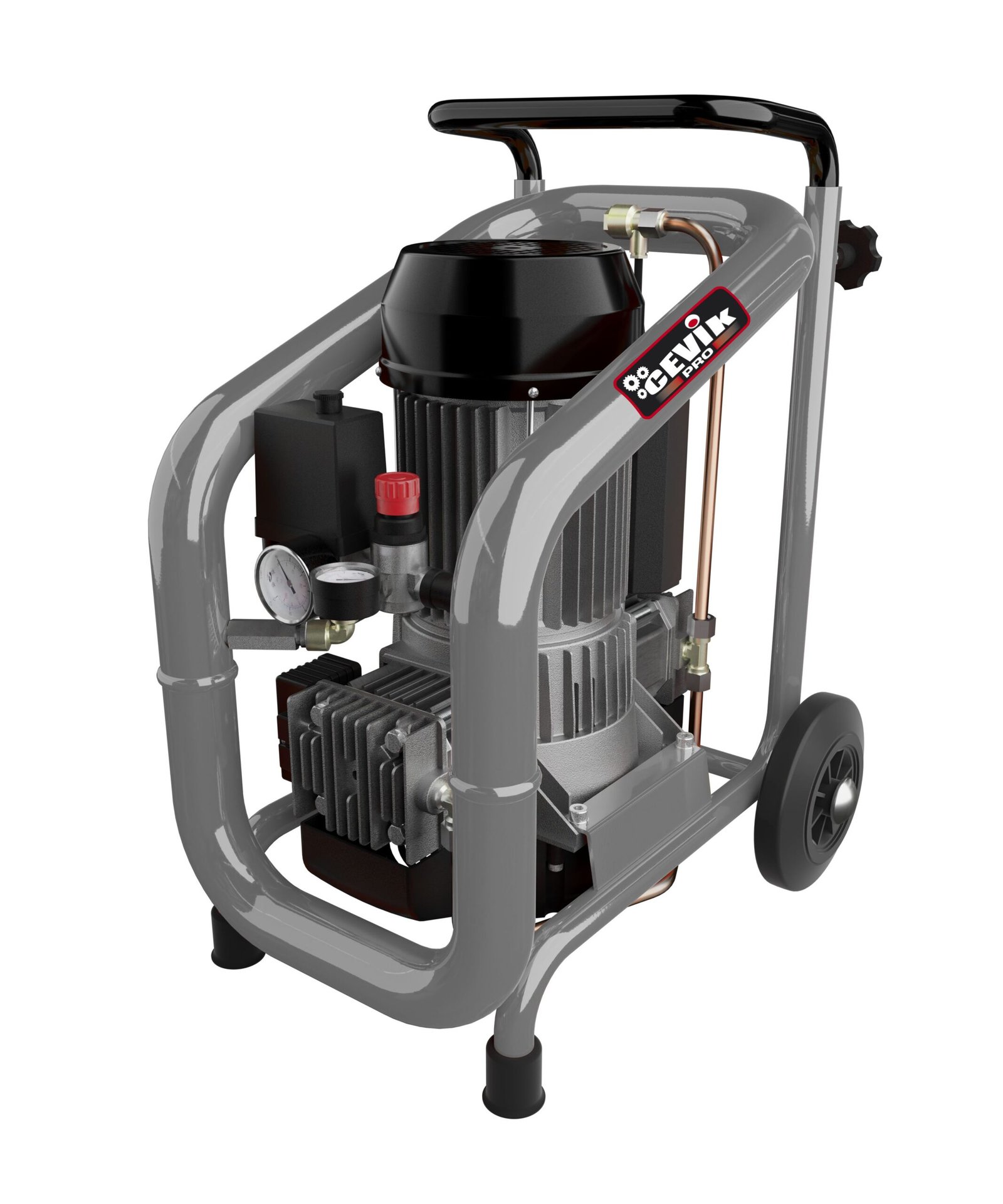 El avanzado sistema de control incluye un doble manmetro para monitorear la presin del depsito y del aire de salida, un regulador manual de presin y un botn de apagado y encendido, asegurando un uso eficiente y seguro del equipo.