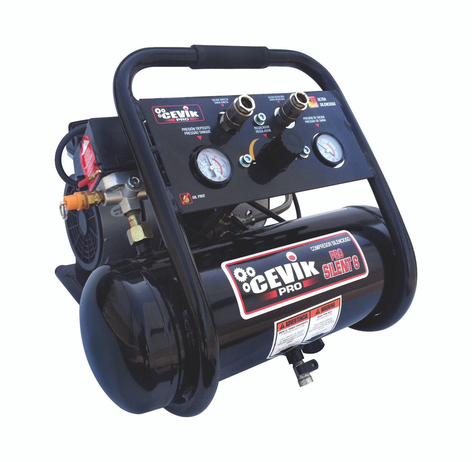 El Compresor Silencioso sin Aceite de 6 Litros y 1HP es una herramienta porttil y compacta, diseada para satisfacer una amplia gama de necesidades tanto en interiores como en exteriores.